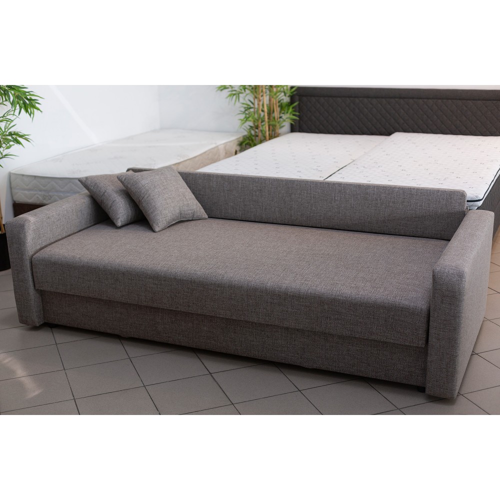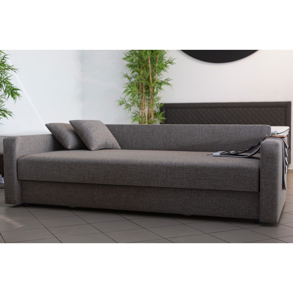 (+371) 27050589Single bed with a laundry box and a lift-up mattress. Overall size - 93 cm x 224 cm. Bed size - 90 cm x 200 cm.