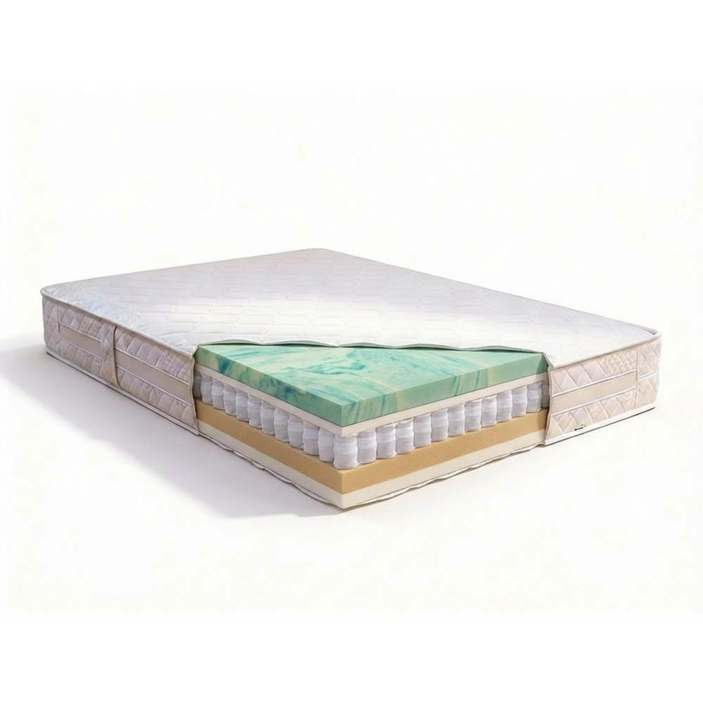 The independent minipocket springs respond individually to body weight, functioning as a precise ergonomic support system that promotes correct spinal alignment and excellent motion isolation. The Dryfeel foam layer provides structural stability and high breathability, helping to maintain optimal airflow and a balanced internal microclimate.