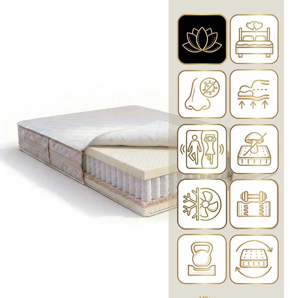 Thanks to its thoughtfully engineered layered structure and excellent air circulation, the mattress efficiently dissipates excess heat and moisture, keeping the sleeping surface fresh, dry, and comfortably cool. Air flows freely throughout the entire mattress, creating a natural microclimate for calm, deep, and uninterrupted sleep.