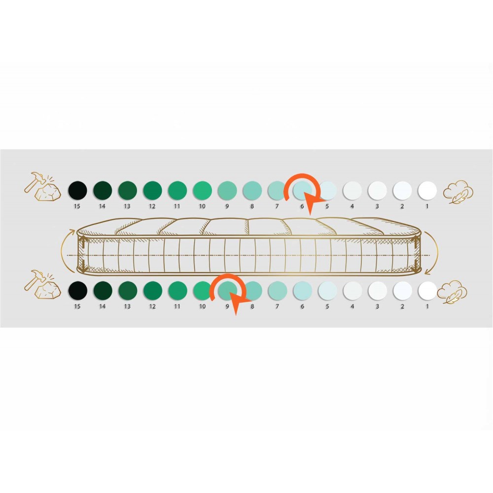 The mattress offers two distinct comfort sides without compromising its high-level orthopedic support. The softer side features a Softlex latex layer, providing gentle immersion and deep relaxation. The opposite side combines 3D Labirynth and latex layers, delivering a pleasantly cool and refreshing support, especially appreciated during warmer nights.